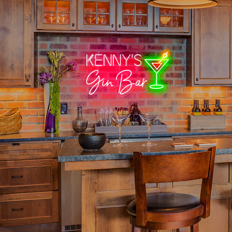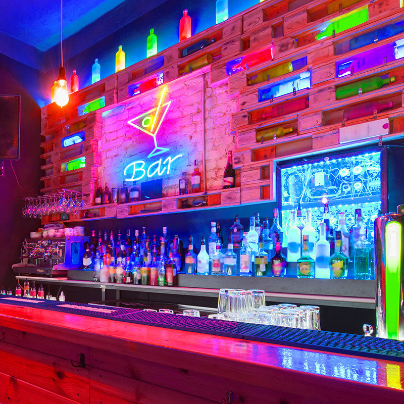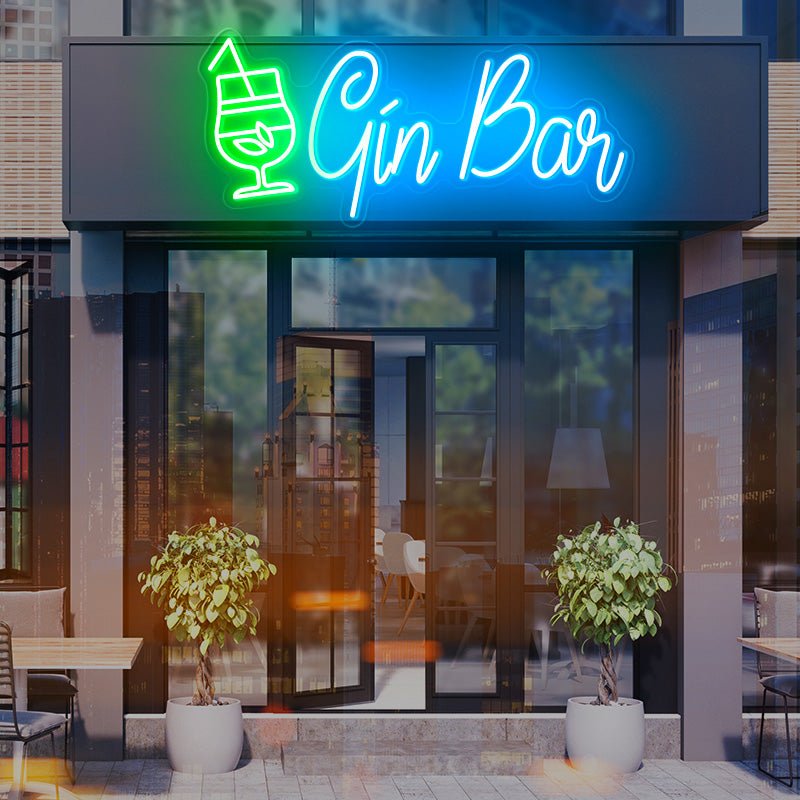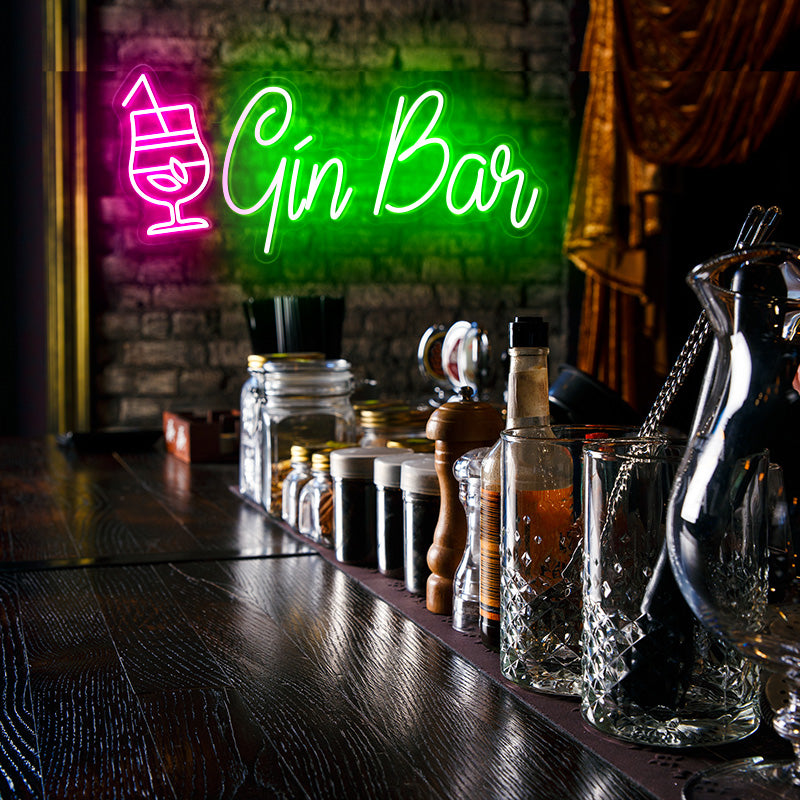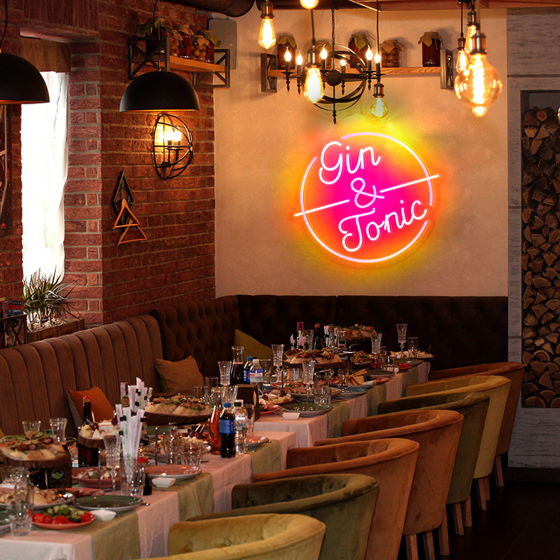 Moreover, a clever neon drinks sign with the bar's name or the words "positive vibes only" might feel inviting and create a glam and energetic atmosphere.