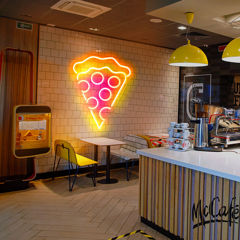 Custom a nique and novel LOGO neon signs light up your fast food restaurant or casual restaurant. Design with your company name or LOGO, tagline or mascot, Let customers know about your business quickly,In addition, a funny selfie backdrop for customer, It's cool and it will give a very good vibes to the shop and increase your business