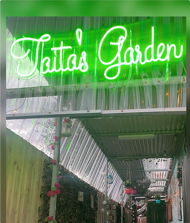 Let's show you how gorgeous with the green neon signs used for garden house, party theme decor, cafe shop, bar and so on, if you want to create a text green neon signs, please used our tool free design online , You can see the exact size and effect, If you want to design a more complex neon, you can upload your sketches to us and we will customize your style and size.