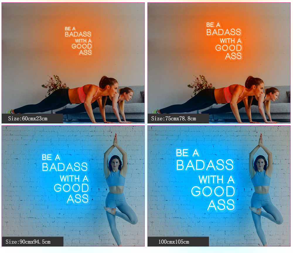 Stay motivated and keep your spirits high with the Be a Badass with a Good Ass LED Neon Sign. Perfect for the gym or your home fitness area, this unique sign will surely make you smile with its funny and inspirational message. So why settle for a boring space when you can add some personality and motivation with this quirky sign?