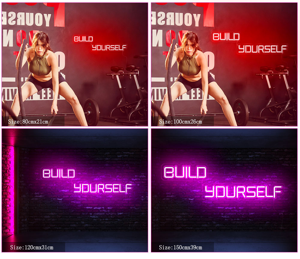 You may need a little extra help getting through those tough workouts, a creative and inspiring "bulid yourself" neon light is an amazing choice. Whether it's used for your home gym or yoga studio/Fitness studio, you will absolutely loved it along with all of your guests!