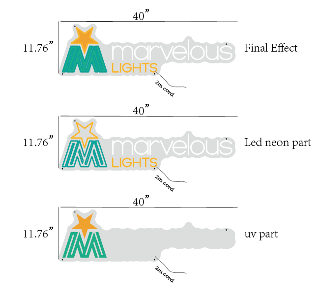 If you are looking for something different, such as a business LOGO sign or custom neon artwork, simply upload your image/Sketch to our website, tell us what colour and size you'd like, and we'll send you a free mockup and quote for your design! enjoy peace of mind knowing that each and every sign we make comes with a 24-month warranty. custom your own neon light sign 100% fit your need,let's light up yout next party!