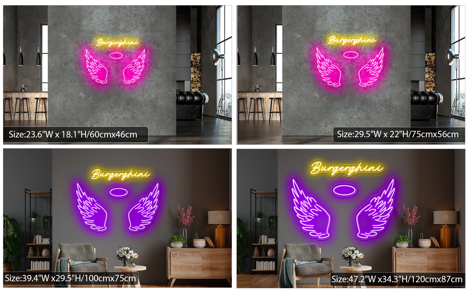 Choose your angel wings&halo neon sign colour and size at option.