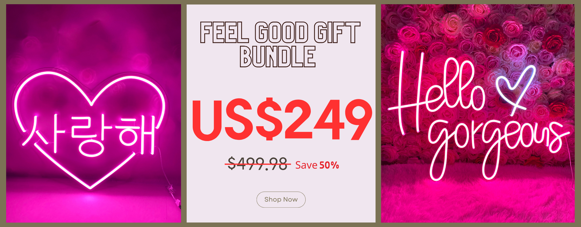 Introducing our vibrant Feel Good Gift Bundle, featuring two meticulously crafted 50cm neon signs. The Hello Gorgeous Neon Sign adds charm and confidence to any space, while the Korean Lover Neon Sign makes a bold statement. Elevate the ambiance and express your personality with this curated collection.