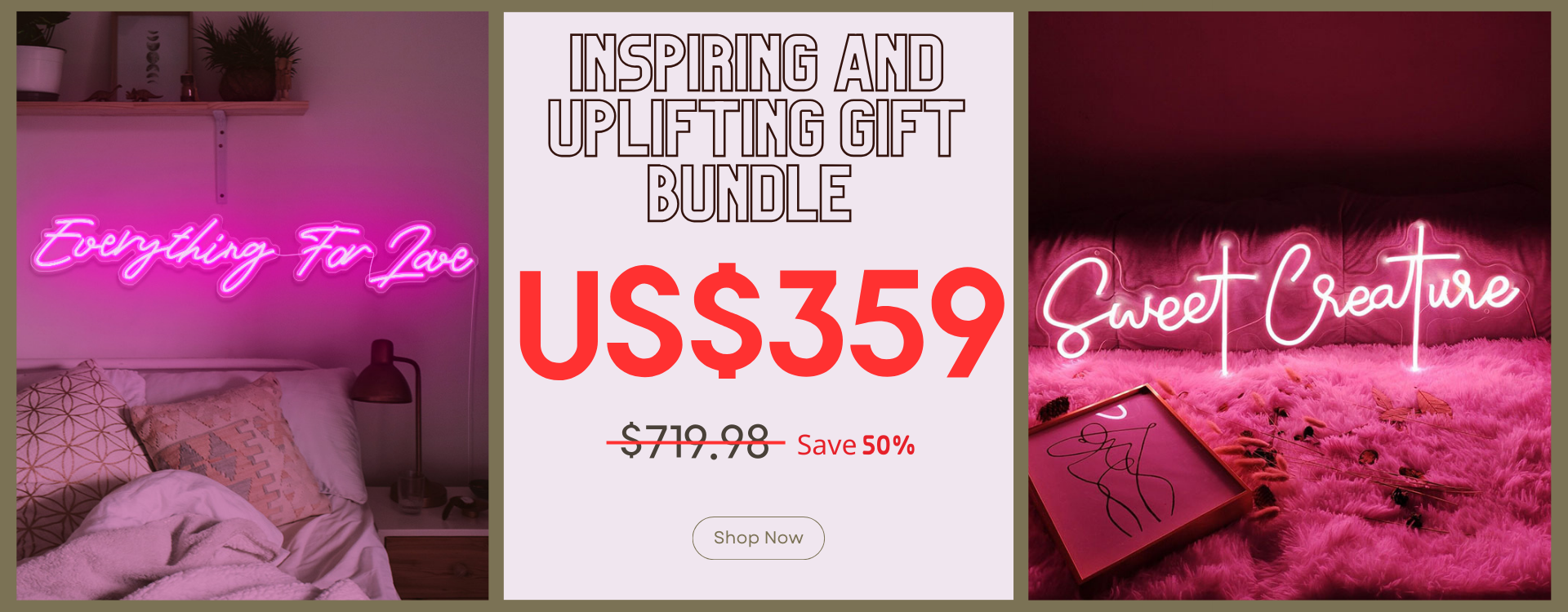 Introducing our Inspiring and Uplifting Gift Bundle, a collection that exudes love, positivity, and inspiration. This extraordinary set features two magnificent 75cm width neon signs. The Sweet Creature Neon Sign represents tenderness and kindness, while the Everything For Love Neon Sign serves as a beacon of love and unity. Illuminate your space with these powerful symbols and embrace the uplifting energy they bring.