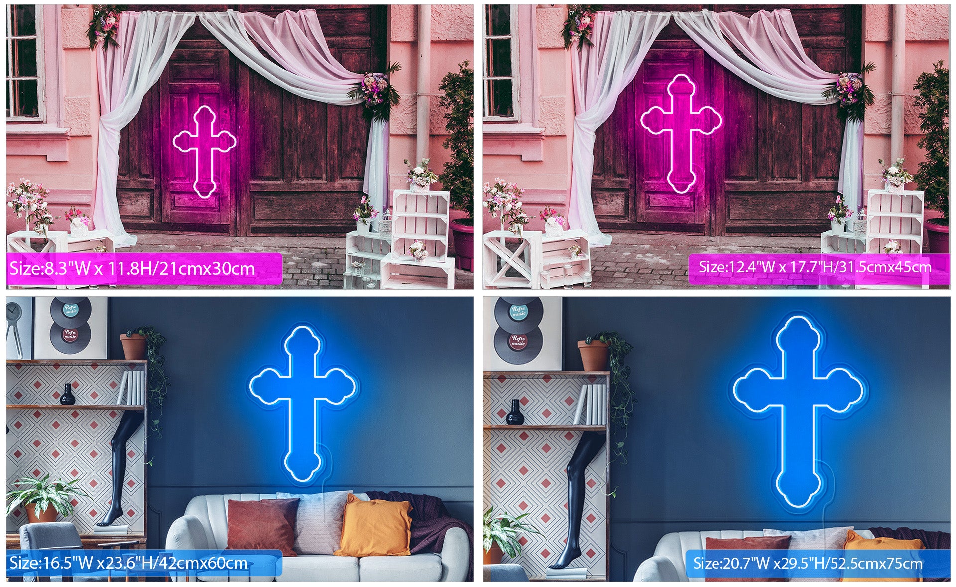 Personalized Neon Christian Cross neon light sign Reference sizes,of caurse ,We are happy to customize your size 100% fit you! Just contact us to do that.