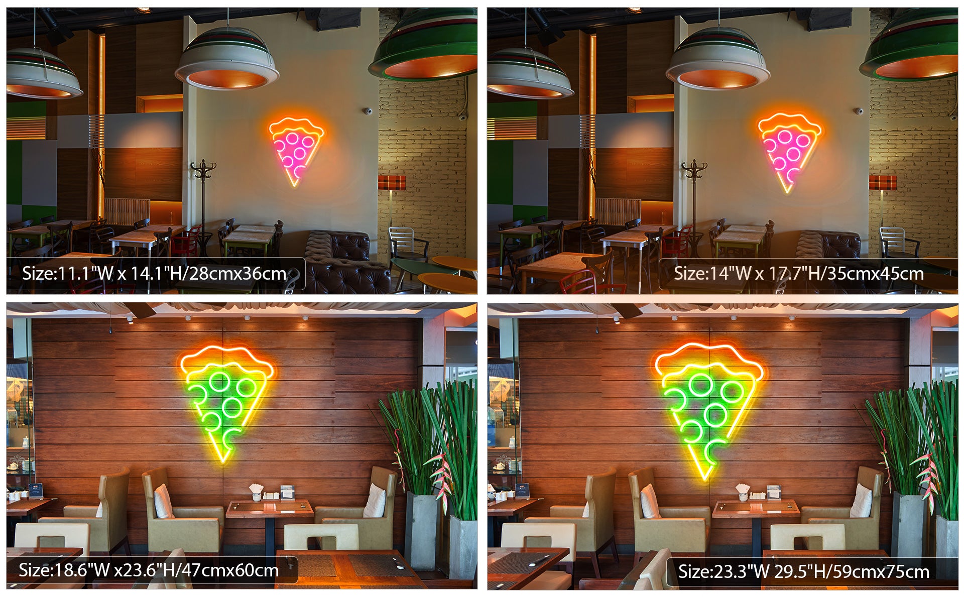 Handcrafted for the perfect pizza vibe! This Pizza Model Led Neon Light adds warmth to your pizzeria. Enjoy the authentic look and feel of your favorite pie with this hand made neon sign that will make your customers feel at home.