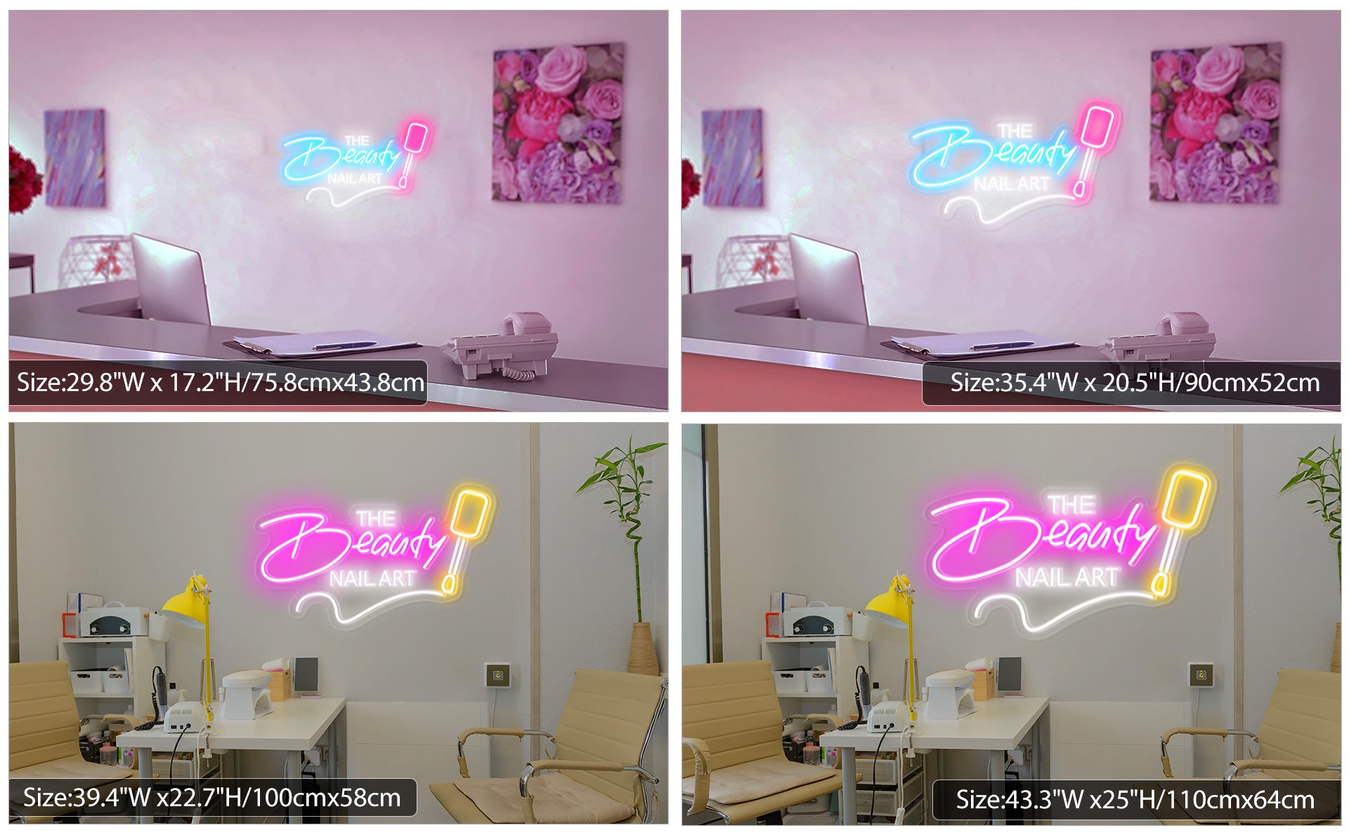 Introducing the beauty nail art neon light, a unique and eye-catching addition to your business. This handmade neon sign is completely customizable, allowing you to wow your customers with a personalized touch. Make a statement and stand out with this stunning neon sign.
